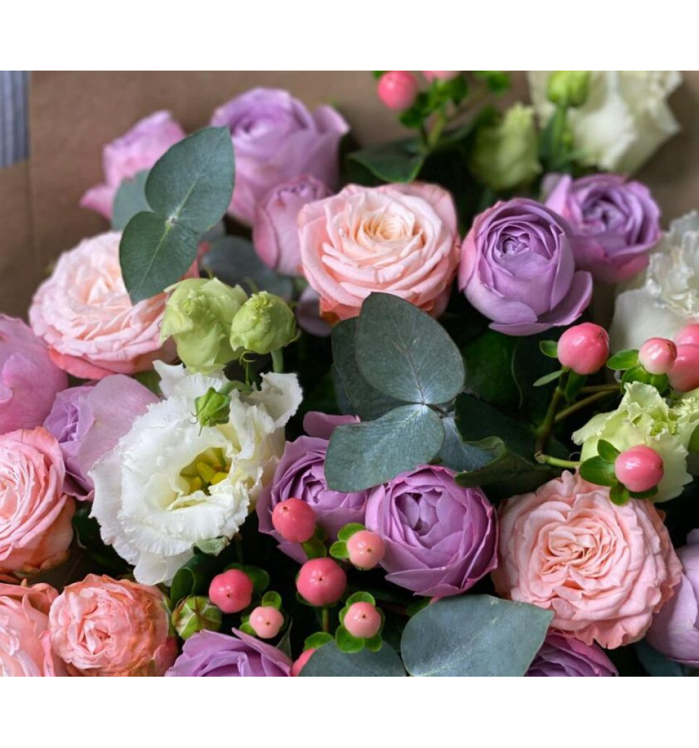 Прекрасный букет из пионовидных роз — это гармоничное сочетание изящества и страсти. Завораживающие оттенки роз, включая мадам бомбастик и лавандер баблс, создают атмосферу романтики и таинственности. Гиперикум и эустома добавляют нежности и свежести, а эвкалипт Микс придает композиции особый шарм. Каждый цветок тщательно подобран, чтобы создать уникальную и элегантную композицию. Этот удивительный букет станет замечательным подарком для особых моментов, чтобы выразить свои чувства и создать незабываемые впечатления у вашего получателя.