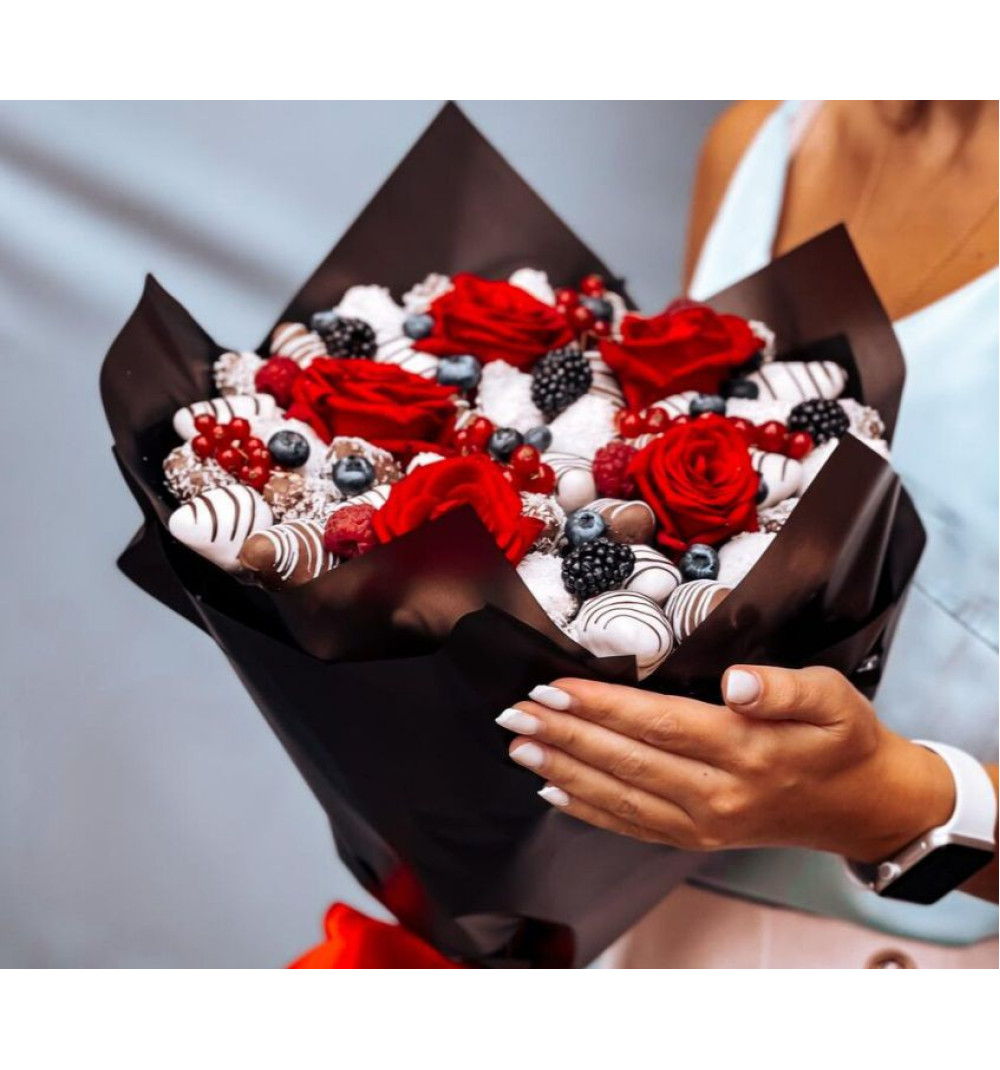 Купить Стильный букет с клубникой в Актобе за 20 000 ₸ | интернет-магазин «Guls»